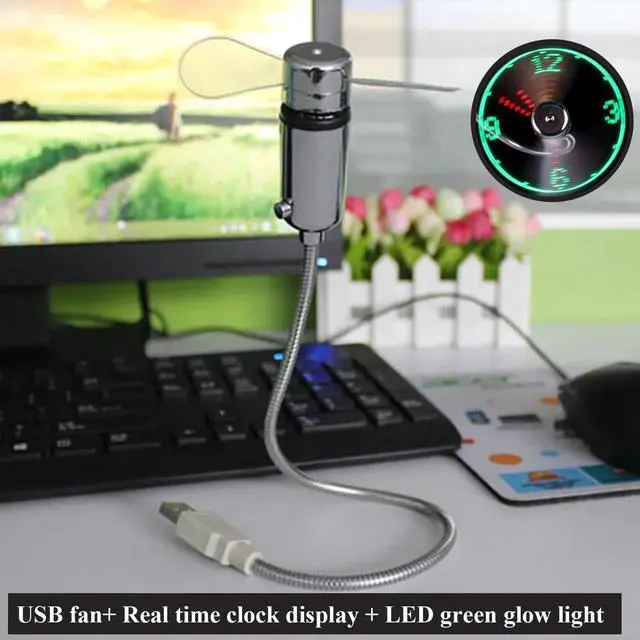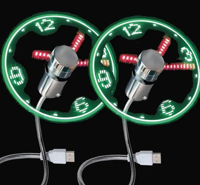 Led clock fan: This small item is practical and cool fun. It is a portable usb fan+led light +runtime. The special fan blade creates an LED clock face and will display real time (just hold the on/ off switch to adjust the time)