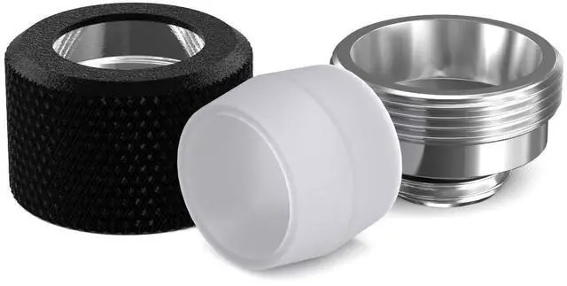 14mm OD Rigid PETG tubing 14mm OD Rigid PMMA tubing 14mm OD Rigid Copper tubing Included Parts 12x Coated cap 12x Nickel plated base 12x Bottom sealing o-ring 12x Tubing sleeve seal insert Installation No installation tool required. Finger tighten only. SX caps are coated with a durable powder coat, but we still recommend handling with care so you can enjoy the finish for years to come. If tools have to be used to loosen, make sure to cover them with a soft material to protect the finish.