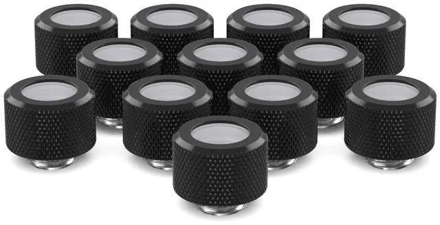 14mm OD Rigid PETG tubing 14mm OD Rigid PMMA tubing 14mm OD Rigid Copper tubing Included Parts 12x Coated cap 12x Nickel plated base 12x Bottom sealing o-ring 12x Tubing sleeve seal insert Installation No installation tool required. Finger tighten only. SX caps are coated with a durable powder coat, but we still recommend handling with care so you can enjoy the finish for years to come. If tools have to be used to loosen, make sure to cover them with a soft material to protect the finish.