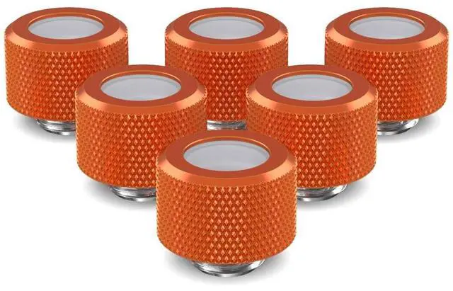 14mm OD Rigid PETG tubing 14mm OD Rigid PMMA tubing 14mm OD Rigid Copper tubing Included Parts 6x Coated cap 6x Nickel plated base 6x Bottom sealing o-ring 6x Tubing sleeve seal insert Installation No installation tool required. Finger tighten only. SX caps are coated with a durable powder coat, but we still recommend handling with care so you can enjoy the finish for years to come. If tools have to be used to loosen, make sure to cover them with a soft material to protect the finish.