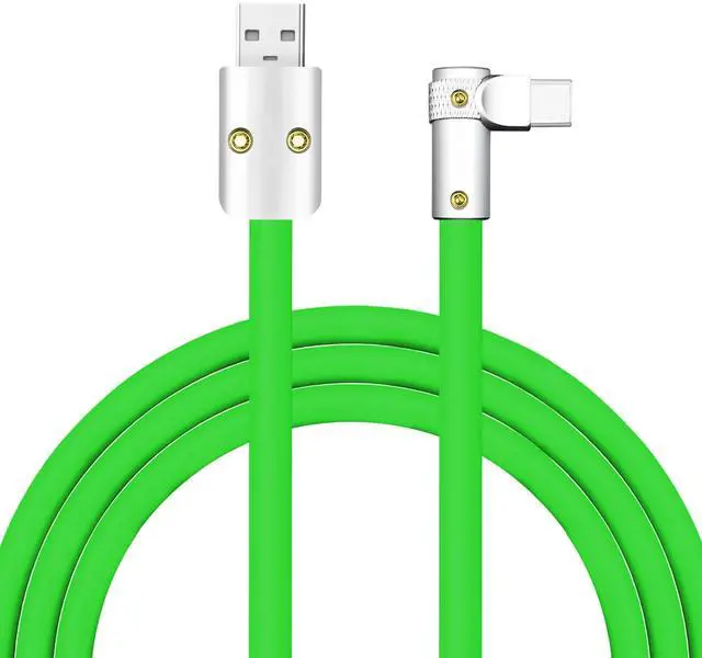 chubbycable FlexElbow Pro - 90 Degree Design 240W Fast Charge Cable Ultra-Thick Silicone Right Angle USB C Cable Phone Tablets Charging Cord, Green, USB-A to Type-C, 16.4FT