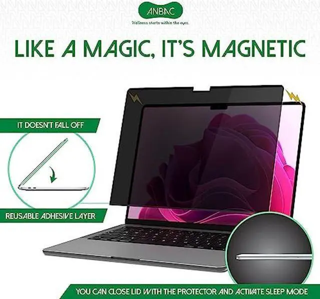 ANBAC Laptop Magnetic Privacy Screen Protector for 14 inch MacBook Pro (2023, M3 Pro, M3 Max, M2 Pro, M2 Max / 2021, M1) - Blue Light Blocking Screen Shield, Anti-Smudge Computer Security Screen Filter