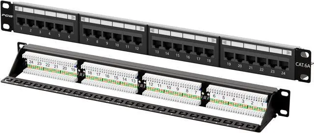 FGB 10Gbps Cat6A Patch Panel, 24-Port RJ45 Ethernet Patch Panel for 19" Rackmount or Wall Mount, 1U Network Panel for Gigabit Networks