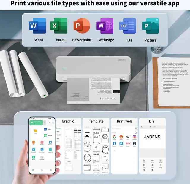 • JADENS Portable Printer & 200 Sheets Thermal Papers