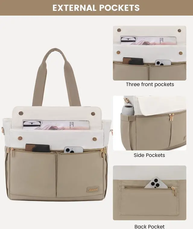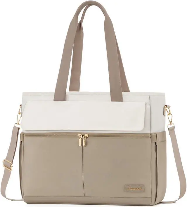 LOVEVOOK Women's Khaki Beige 15.6 Inch Laptop Tote Bag, Large Capacity Work Bags with Multiple Pockets, Water Resistant Computer Bag for Business Travel, Nurse, Teacher