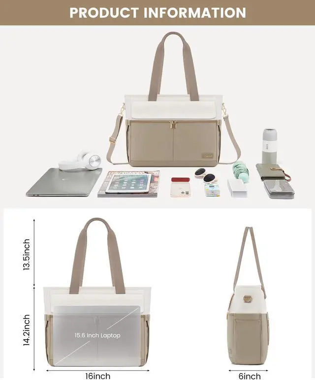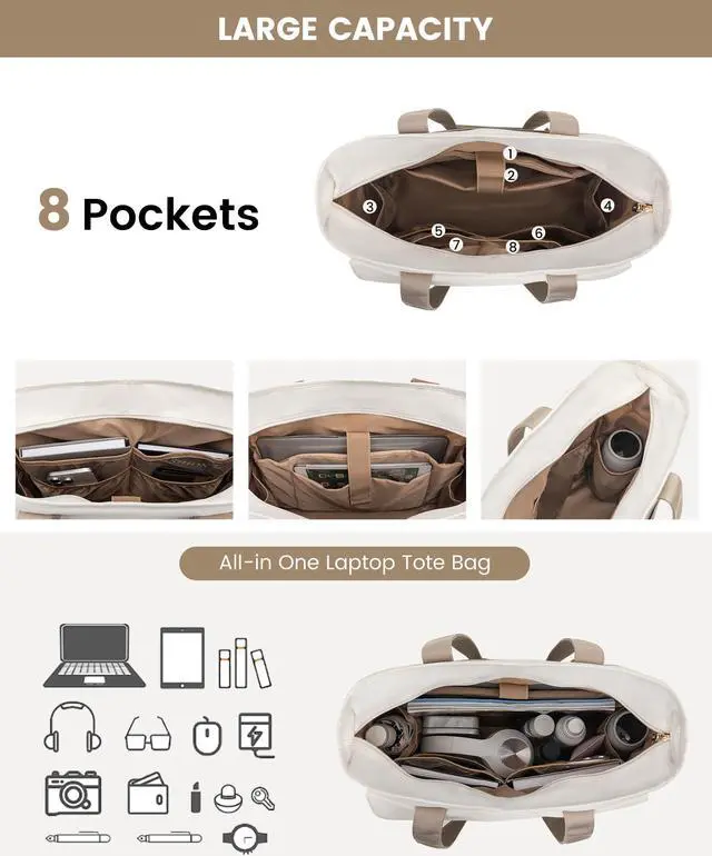 [(Plenty of Space)] This tote bag for women work features a large capacity to fit a 15.6-inch laptop. With 8 internal pockets including a laptop compartment, 2 mesh pockets, and 2 slip pockets, this teacher tote bag ensures easy organization of all your essentials.