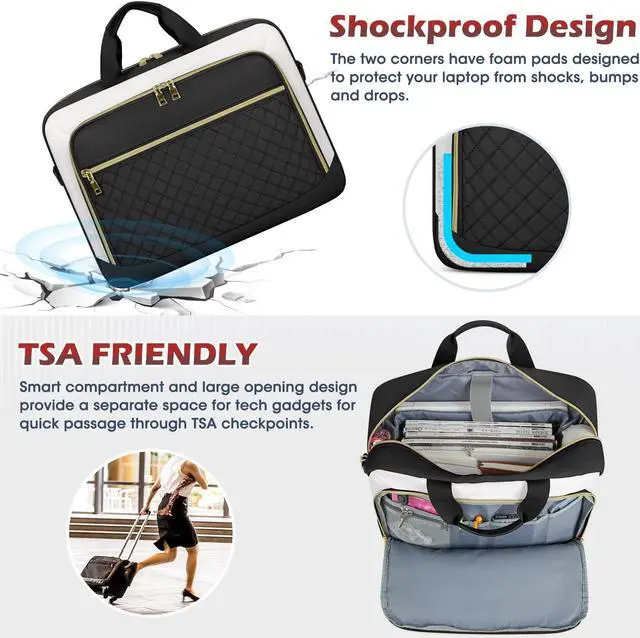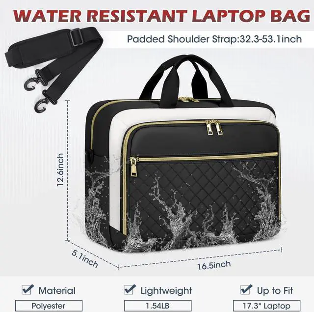 [(Professional Laptop Bag)] Computer bag dimension: 16.5"L x 5.1" W x 12.6" H; Net weight: 1.54LB, compatible with tablets and most laptops up to 17.3 inch such as Macbook Air/Pro, Chromebook, Asus, Dell, Acer, HP, Lenovo and so on. The main tech compartment of the laptop bag is filled with dedicated thick padding, providing 360-degree protection for your electronics from collisions, drops, scratches, dust, etc.