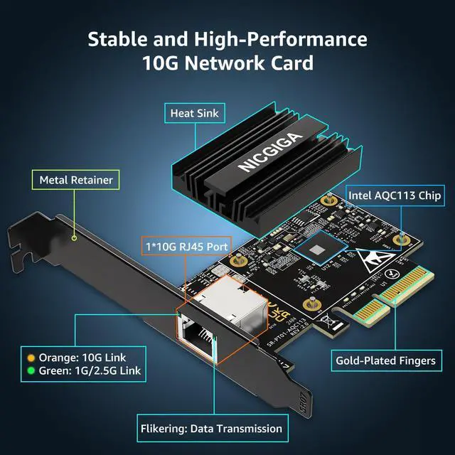 10G Base-T PCI-e Network Card, Marvell AQC113 Controller, NICGIGA 10Gb Ethernet Adapter Support WOL, 10Gbe RJ45 Port NIC Card, Windows10/11/Windows Server/Linux