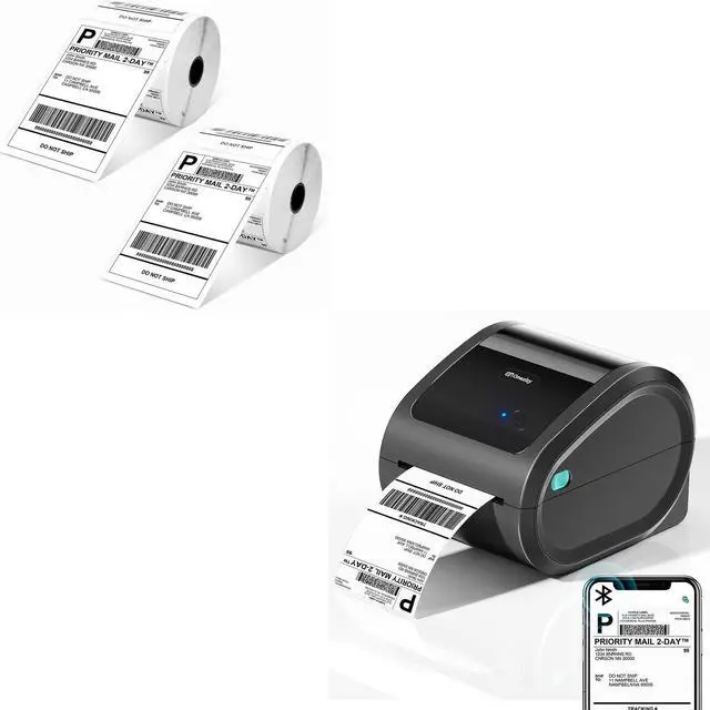 Omezizy D520BT Bluetooth Shipping Label Printer and 2 Roll Thermal Labels, Wireless Thermal Label Printer for Small Business, Thermal Printer for Shipping Labels