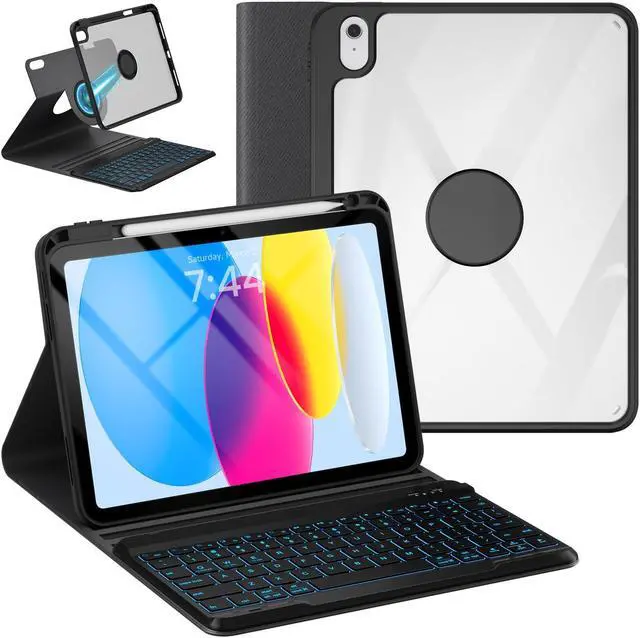 [(Detachable Backlit Keyboard)] 7-color backlit keyboard for iPad 10th generation with ergonomic and mechanical scissor keys for a comfortable and noise-free typing experience, even in low light environments.
