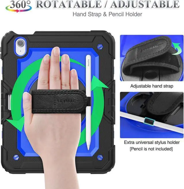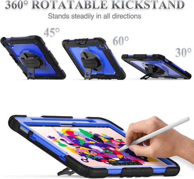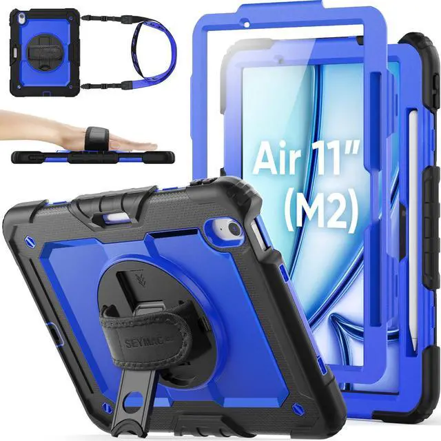 SEYMAC stock Case for iPad Air 11 inch Case M3/ M2 (2025/2024), for iPad Air 6th Generation, Heavy Duty Protective with Pencil Holder, Screen Protector, Stand, Hand Strap, Shoulder Strap, Blue