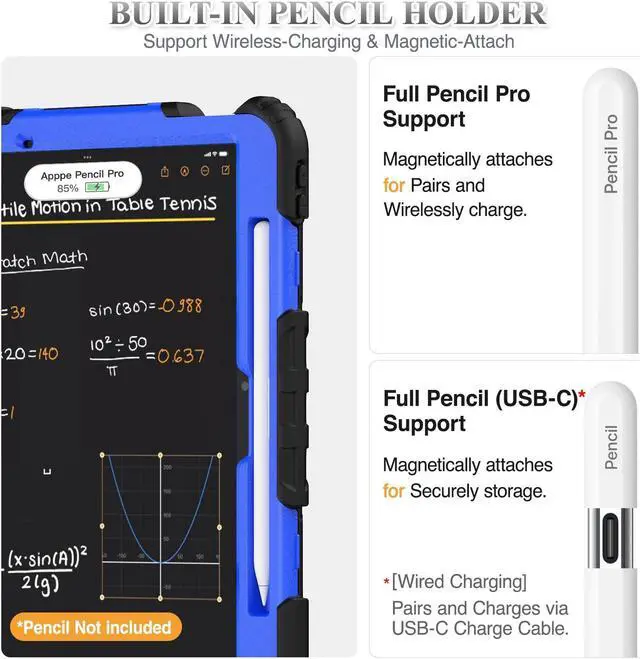 Versatility Stand & Pencil Holder: With 360deg rotating adjustable kickstand stable at multi-angles, case for iPad Air 11 inch M3 M2 for viewing, typing or movie watching; With pencil holder easy storage for note-taking, case for iPad 11 Air case suited for classes/meetings, works or play with-kid