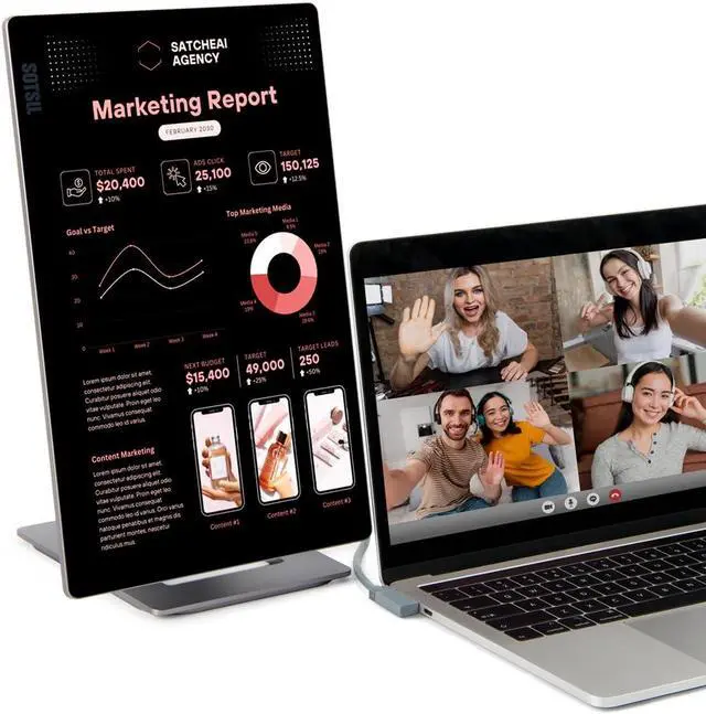 TRAVEL LIGHT - With a folded thickness of just 1/2 inch and weight of 700g, this 14" portable monitor is perfect for business and travel. The monitor is bright, yet it consumes only 4.5 watts, making it perfect for remote work.