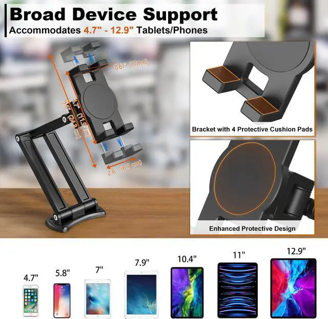 Universal Tablet Mount: Expertly designed for versatility, this iPad holder for trucks adjusts to securely hold devices ranging from 4.7 to 12.9 inches. Whether you're mounting an iPad Pro, Air, Mini, iPhone, or Samsung Galaxy Tab, our robust iPad mount for trucks is the perfect accessory for truck drivers, sailors, and commuters, ensuring your device stays in place, no matter the journey.