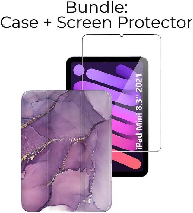 Protect and customize your 8.4 -inch Apple iPad mini with this purple marble SaharaCase Folio case. The ergonomic open button design allows unimpeded operation, while the triple-hardened PU leather and TPU material cushion against impacts and shocks. This SaharaCase Folio case features an auto wake/sleep function that helps optimize battery life, and the front flap cover doubles as a kickstand for hands-free watching.