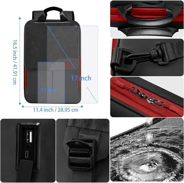 Wide Compatibility - The inner size of the laptop backpack: 16.5 x 11.4 x 2.8/5.9 inches (L x W x H); Compatible with most 17 inch laptops of HP Dell Asus Lenovo Acer MSI and Razer Blade 18 inch.