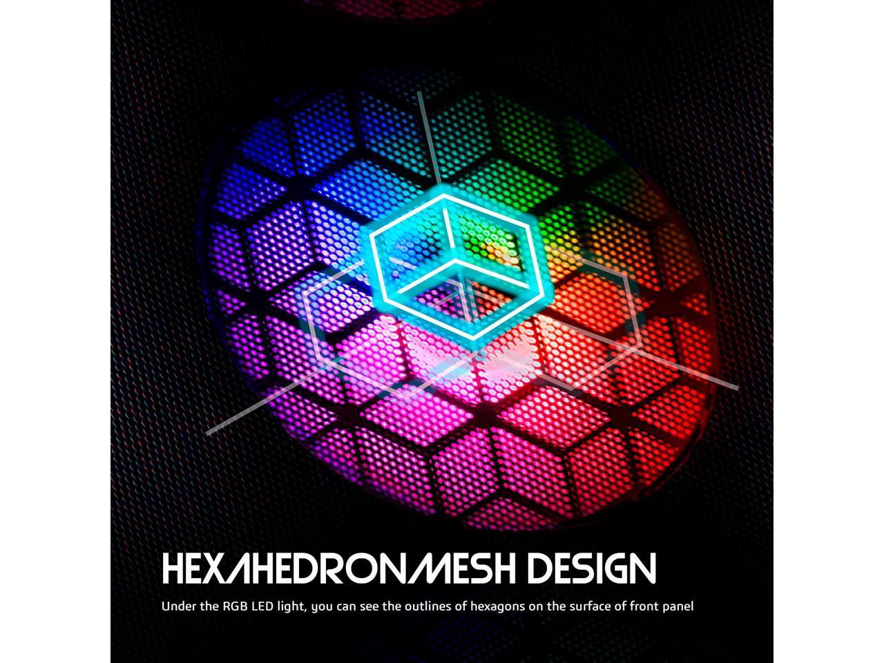 - Front panel with metal mesh grill and honeycomb design. Provide the maximum airflow and the superb light effect.