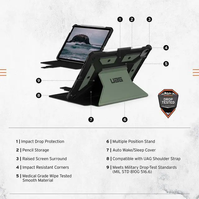 URBAN ARMOR GEAR UAG Designed for iPad Air 10.9 inch Case iPad 5th Generation 2022 Case Green Olive Rugged Smooth Exterior Multi-Angle Viewing Folio w/Pencil Holder Metropolis SE Protective Cover