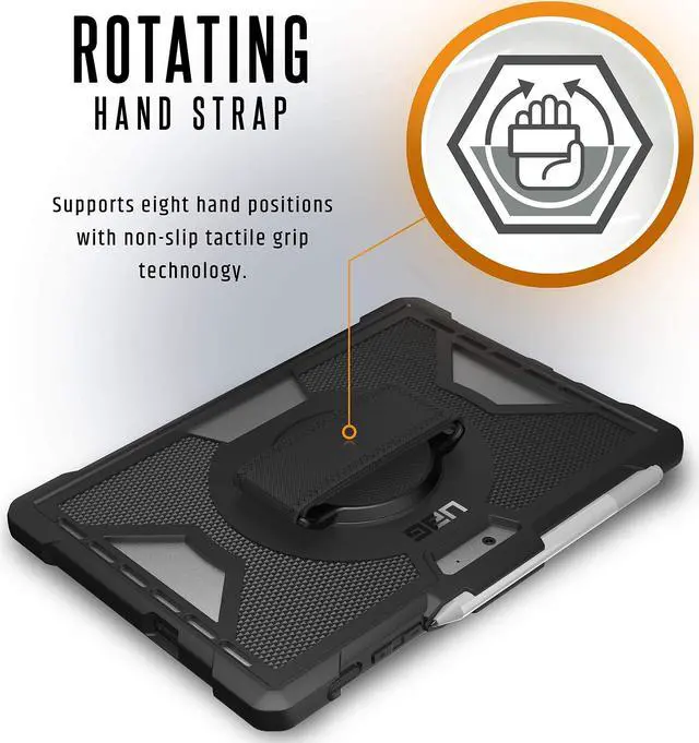 URBAN ARMOR GEAR UAG Microsoft Surface Go 4 / Surface Go 3 / Surface Go 2 / Surface Go Case [10.5-inch Screen] w/Hand Strap Outback Feather-Light Rugged Military Drop Tested Cover, Black