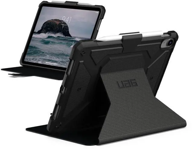 URBAN ARMOR GEAR UAG Designed for iPad 11" A16 11th Gen 2025, 10.9" 10th Gen 2022 Case A3354 A3355 A2696 Rugged Heavy Duty Protective Folio Cover w/Adjustable Stand & Pencil Holder, Metropolis Black