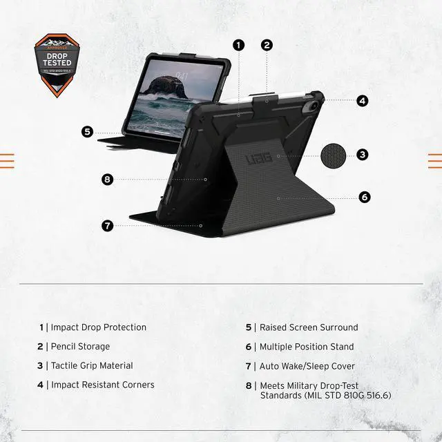 LIGHTWEIGHT CONSTRUCTION: Our iPad case features a featherlight, ultra thin composite construction with a soft impact-resistant core for top-of-line military drop protection. Non-slip tactile grip exterior ensures secure handling while in use. Meets Military drop-test standards (MIL STD 810G 516.6). The case is NOT compatible with Smart Keyboard or Magic Keyboard.