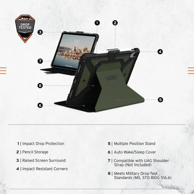 URBAN ARMOR GEAR UAG Designed for iPad 11" A16 11th Gen 2025, 10.9" 10th Gen 2022 Case A3354 A3355 A2696 Rugged Protective Folio Cover w/Adjustable Stand & Pencil Holder, Metropolis SE Olive