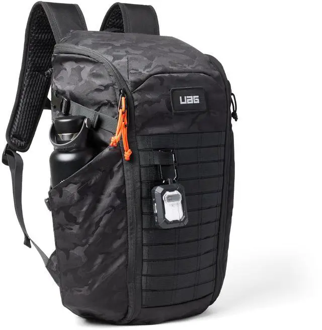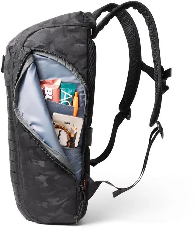Travel Ready: Pass-through to securely attach to rolling luggage. A sternum strap to help prevent the shoulder straps from slipping off your shoulders and to disperse the weight more evenly across the upper body. Nylon stitched loops for gear attachment. Concealed tracker pocket inside main compartment for AirTag or similar tracker for added security. Hook & loop patch logo.