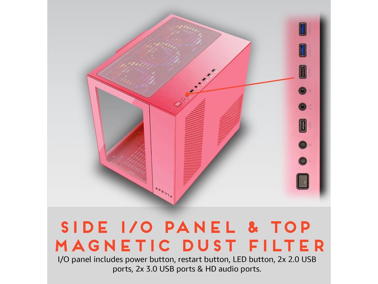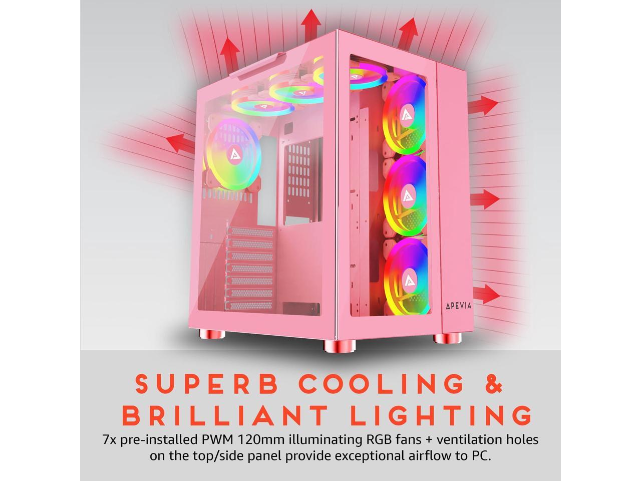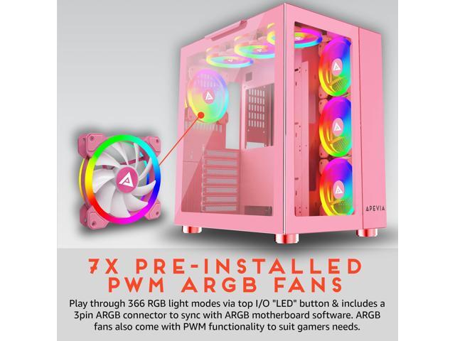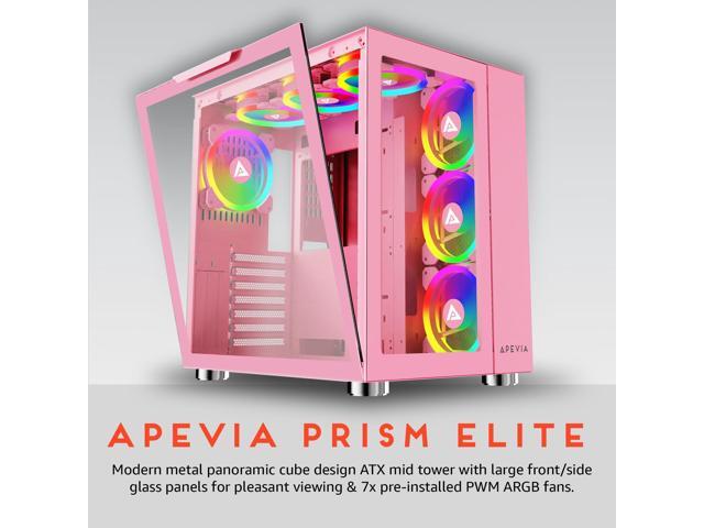 Apevia Prism-Elite-PK Prism Elite Mid Tower ATX Gaming PC Cube Case w/ 7X 120mm PWM ARGB Fans, 366 RGB Modes, Dual Tempered Glass Panels, 360mm Radiator Support, 2X USB3.0, 2X USB 2.0, Pink