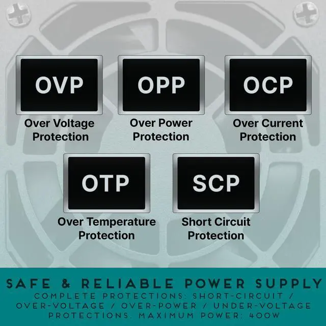 Cooling: Forced Air Ventilation by 1 x 80mm Fan. Various protections including: Overvoltage Protection (OVP), Overload Protection (OLP), Overcurrent Protection (OCP), Heating Protection (OTP), and Short Circuit Protection (SCP). Dimension: 175.26mm x 83.82mm x 63.5mm (6.9" x 3.3" x 2.5") - L x W x H