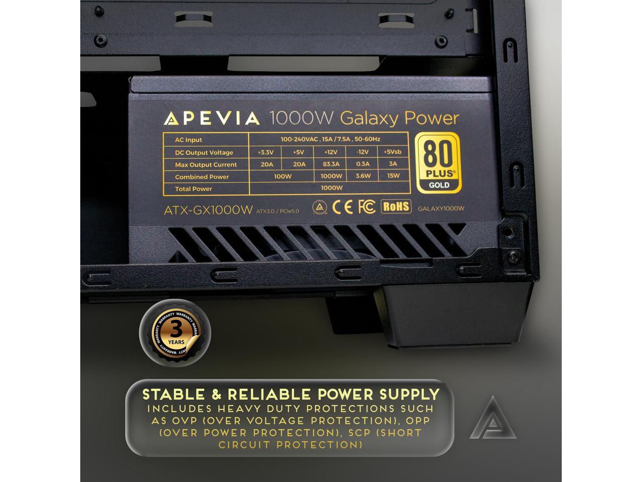 Apevia ATX-GX1000W PCIe 5.0 & ATX 3.0 Ready Galaxy 1000W 80+ Gold Certified, Gen 5 12VHPWR Connector, Active PFC ATX Semi-Modular Gaming Power Supply
