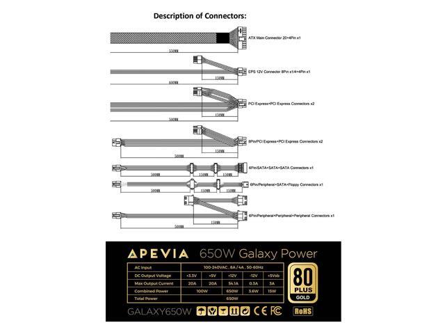 Apevia ATX-GX650W Galaxy 650W 80+ Gold Certified Active PFC ATX Semi-Modular Gaming Power Supply