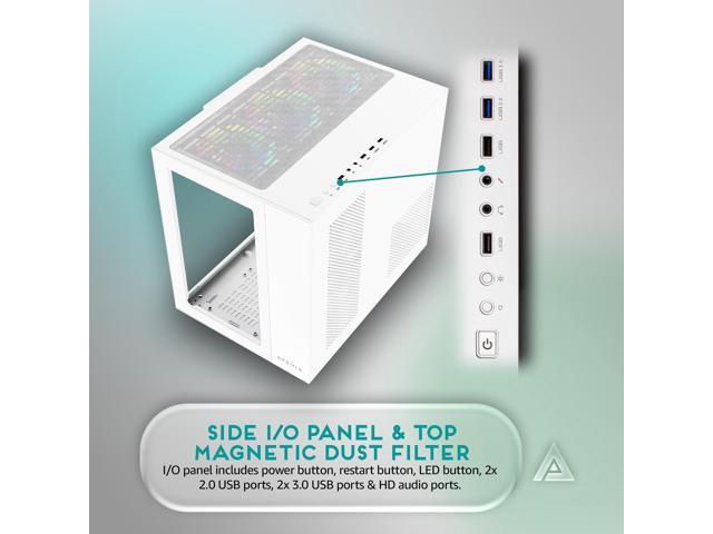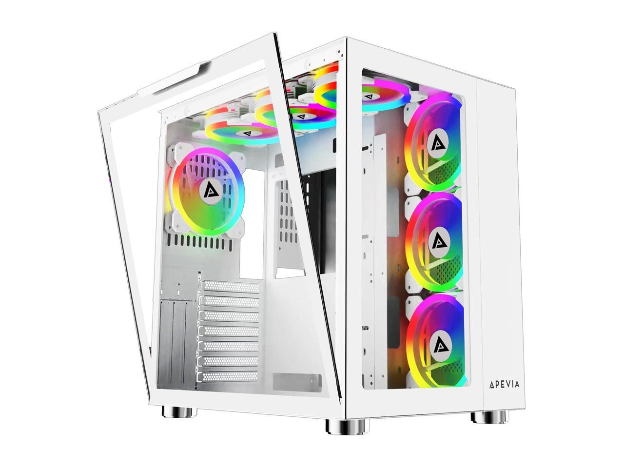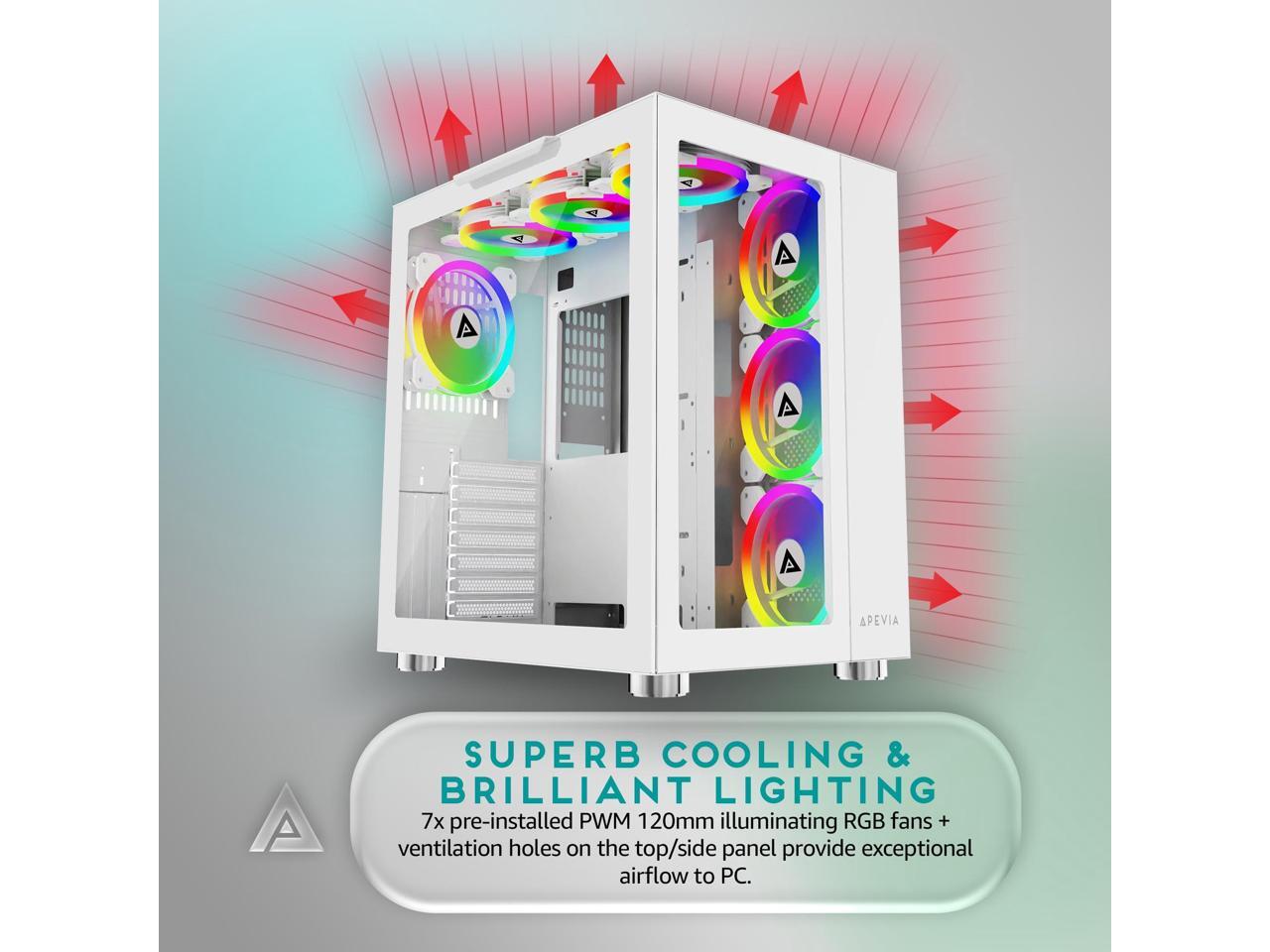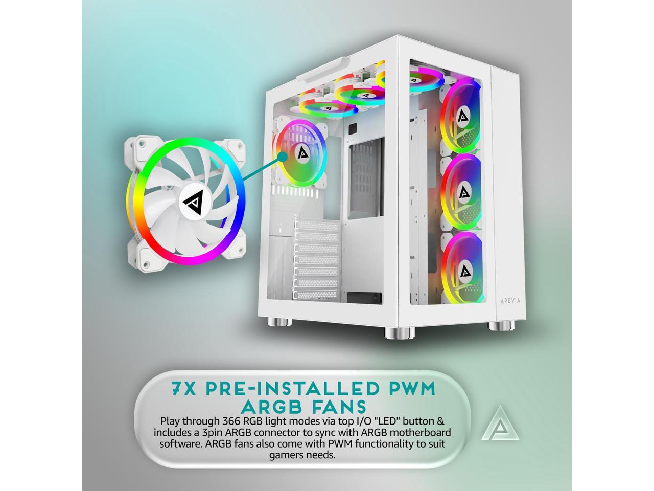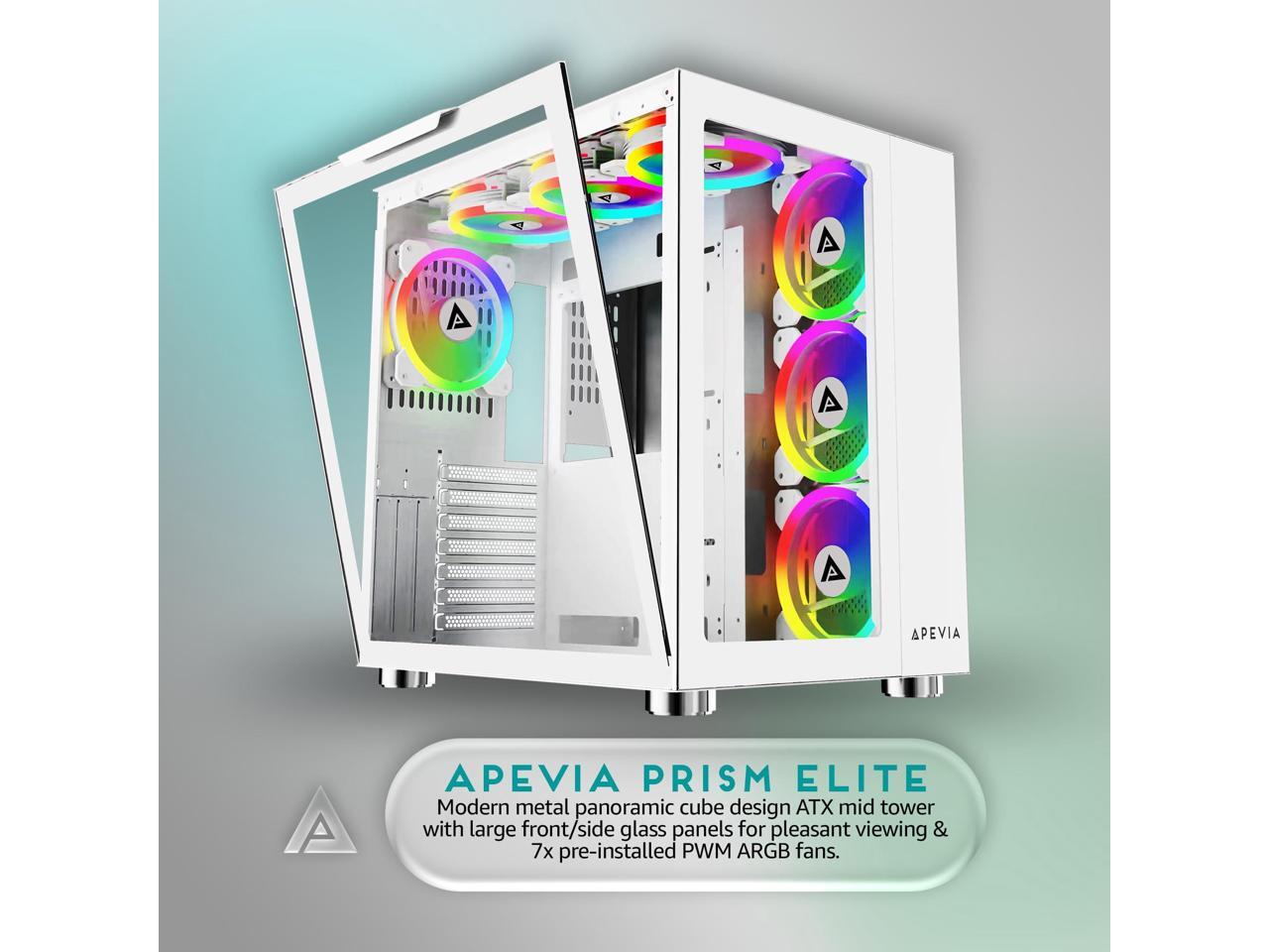 Apevia Prism-Elite-WH Prism Elite Mid Tower ATX Gaming PC Cube Case w/ 7X 120mm PWM ARGB Fans, 366 RGB Modes, Dual Tempered Glass Panels, 360mm Radiator Support, 2X USB3.0, 2X USB 2.0, White