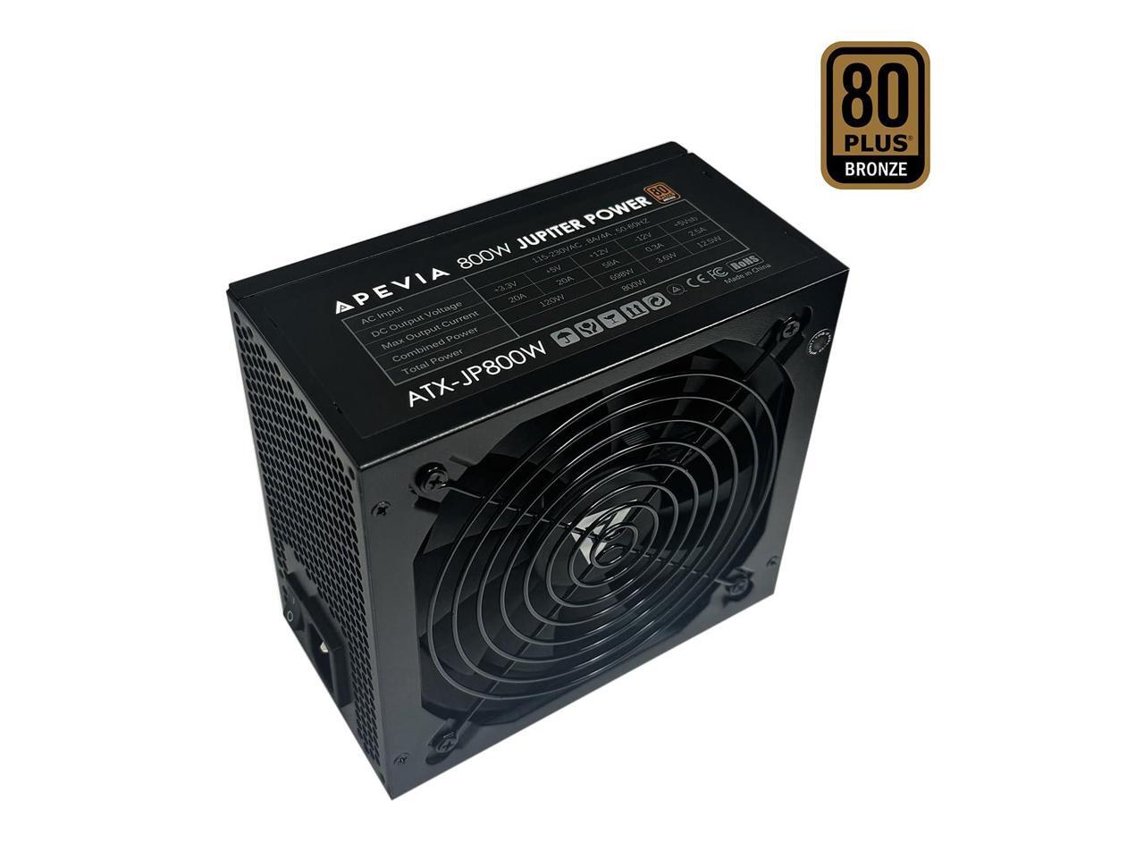 - Apevia ATX-JP800W Jupiter 800W 80 Plus Bronze Certified Active PFC ATX Gaming Power Supply. Comes with 3-year warranty.
