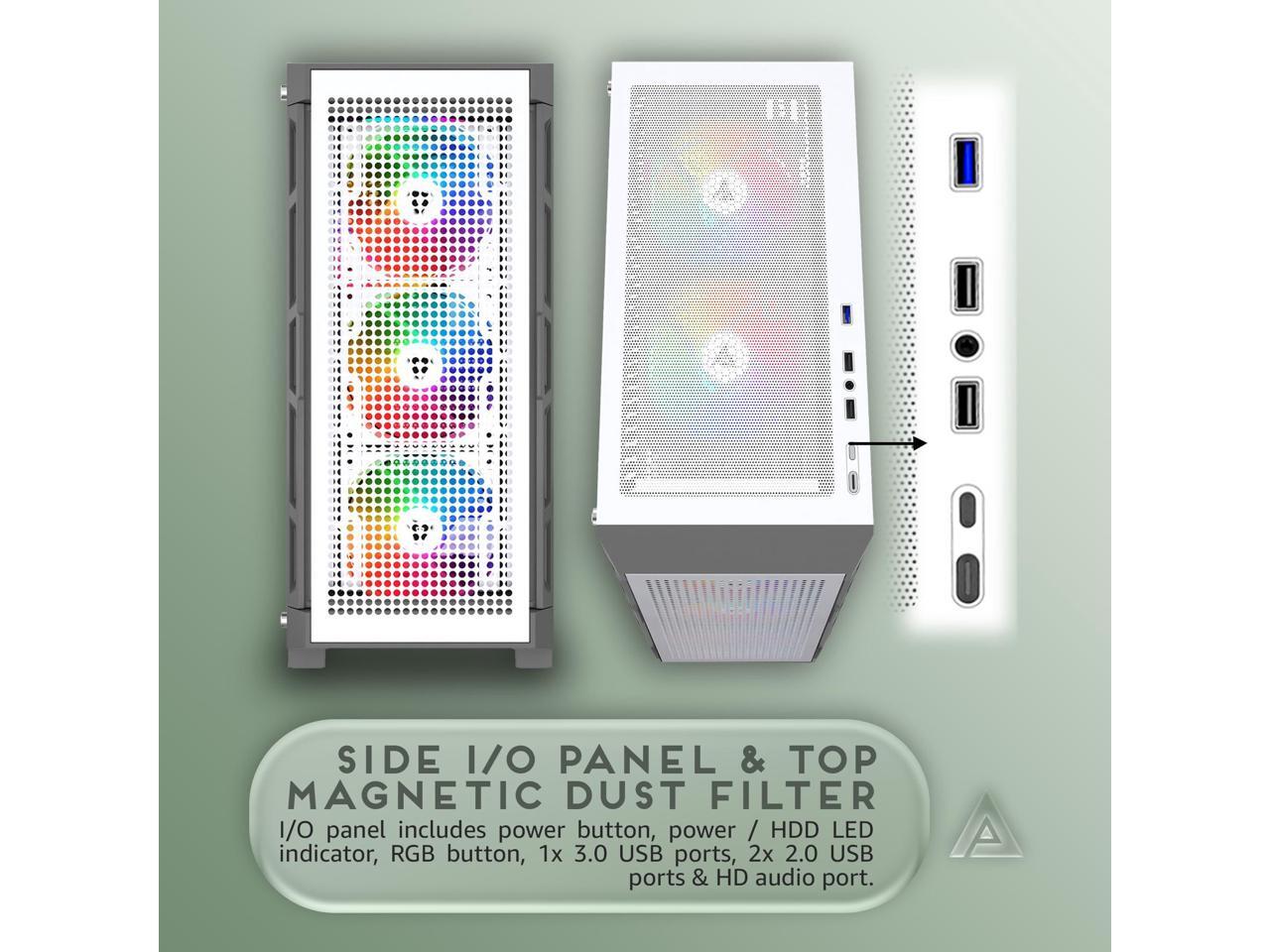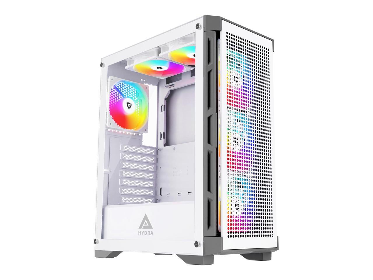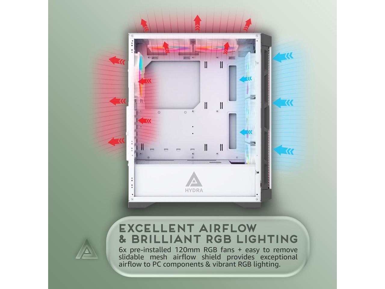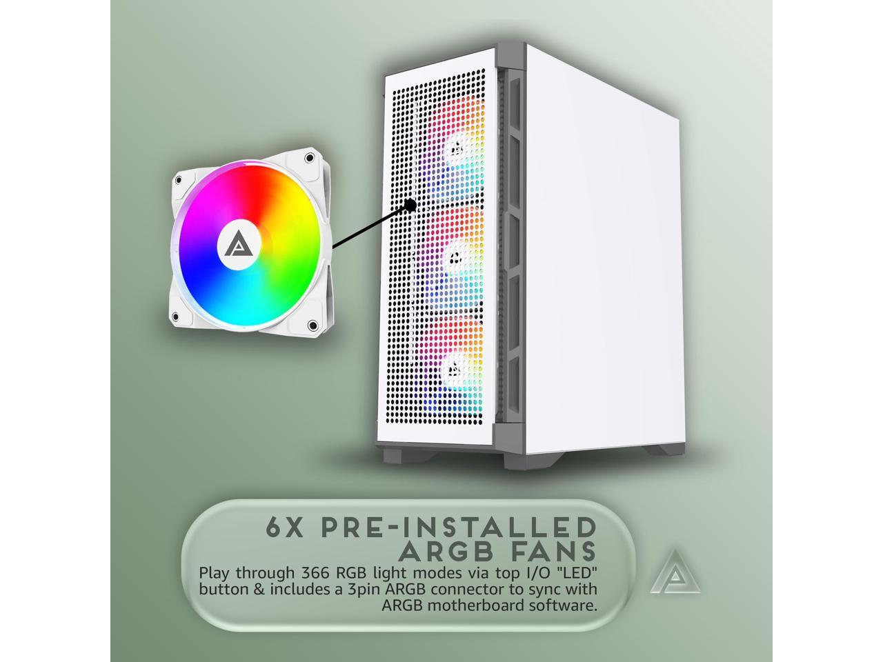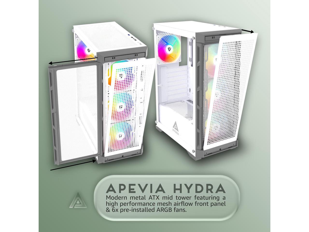 Apevia Hydra-WH Hydra Mid Tower Gaming PC Case w/ 6X 120mm ARGB Fans, 366 RGB Light Modes, High Performance Breathable Airflow Mesh Front Panel, Tempered Glass Side Panel, 1X USB3.0, 2X USB2.0,