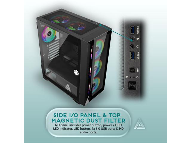 Modern metal mid tower with left-side tempered glass door swivel open style magnetic side panel & front panel tempered glass with airflow design. Plenty of room on the back side to hide and route cables. Can fit graphics cards up to 360mm in length and CPU coolers up to 165mm in height