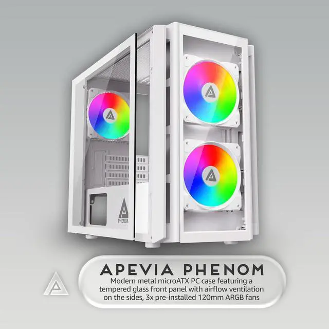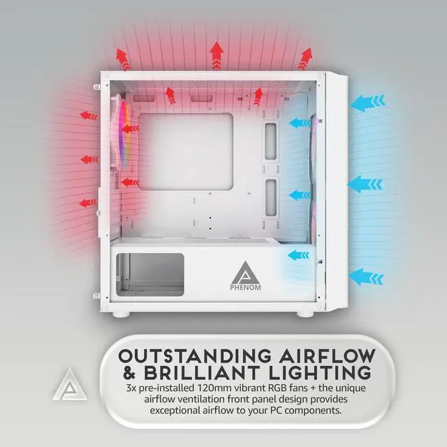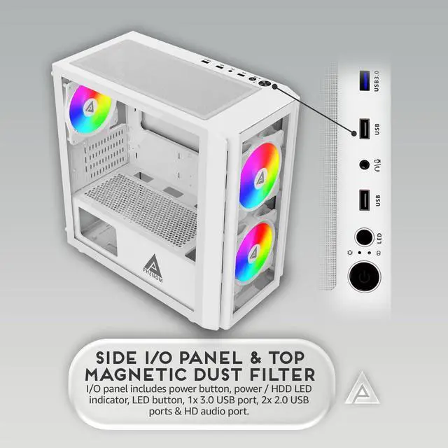 Motherboard compatability: mATX and ITX ^^ 3x 120mm ARGB fans pre-installed in case (2x ARGB fans at the front, 1x ARGB fans at the rear), comes with 3pin ARGB connector on RGB fans for ARGB motherboard sync (Only compatible with ARGB motherboards). RGB fans has 366 RGB lighting modes via RGB light switch button on top of case (Press down on LED button for 5 seconds to switch to motherboard ARGB sync mode) ^^ Top panel comes with power button, restart button, Power LED / HDD LED indicators, 2x USB 3.0 ports, HD Audio jacks.