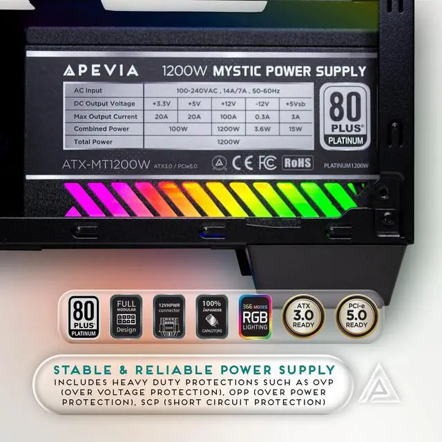 Fully Modular 1200W 80+ Platinum, PCIE 5.0 & ATX 3.0 Ready, Includes Gen 5 12VHPWR 12+4 (12pin/16pin) GPU Connector, Active PFC ATX Gaming Power Supply. ^^ Fully Modular Design Allows Gamers To Only Connect The Necessary Cables.