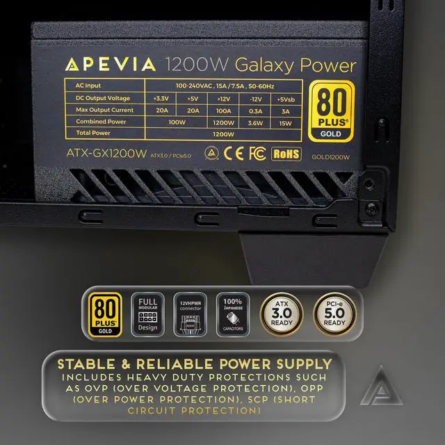Fully Modular 1200W 80+ Gold, PCIE 5.0 & ATX 3.0 Ready, Includes Gen 5 12VHPWR 12+4 (12pin/16pin) GPU Connector, Active PFC ATX Gaming Power Supply. ^^ Fully Modular Design Allows Gamers To Only Connect The Necessary Cables.