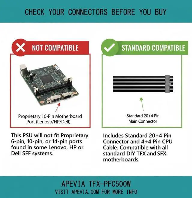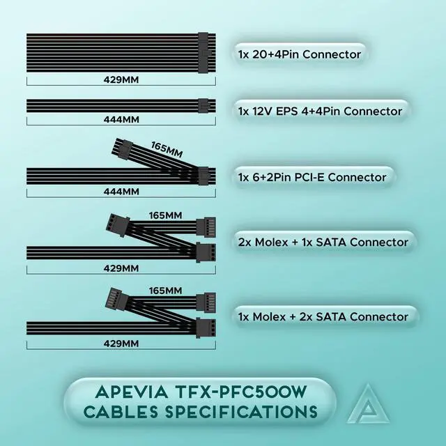 APEVIA TFX-PFC500W Standard 500W TFX Form Factor ATX Power Supply. Full Range Active PFC 90-264V.