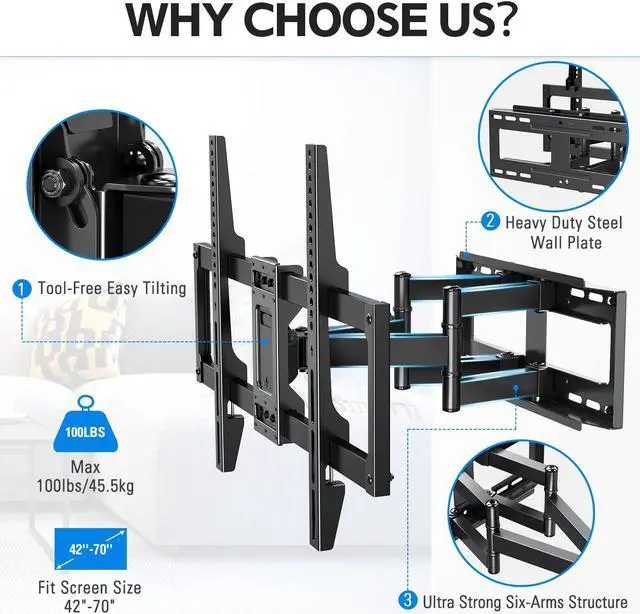 • TV Range - 42-70 inch / 37-70 inch, 100lbs / 99lbs