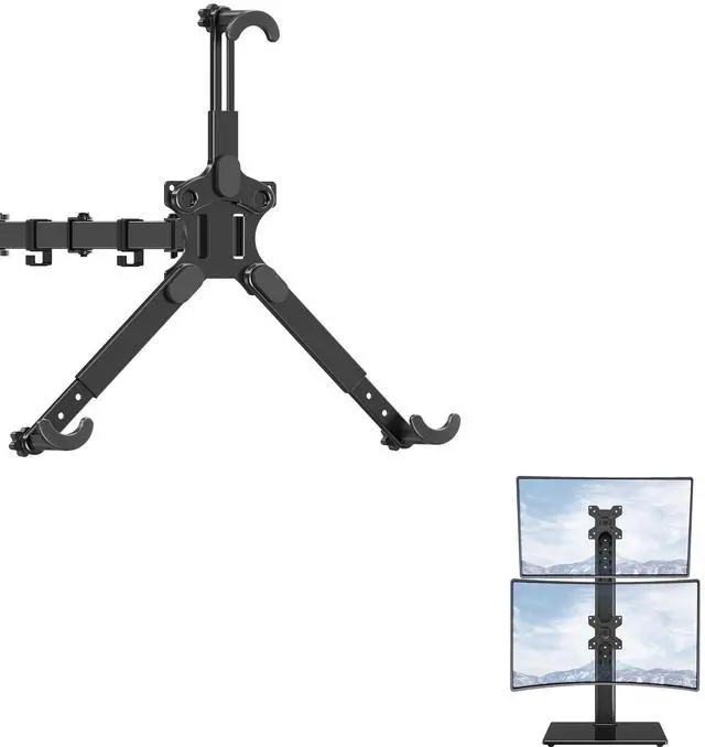 Articulation & Height Adjustment - The double monitor stand comes with a sturdy free-standing base which makes it conveniently portable. The monitors can be tilted 30deg up or down, swiveled 45deg right or left, and rotated 360deg for maximum viewing comfort. 11 different positions and a total of 12.44'' of height movement along the pole are perfect for the monitor it was needed for.