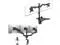 ARTICULATING MONITOR ARMS - 2 outer arms can tilt -35 to +35 degrees, swivel -90 to +90 degrees and support rotation +180 to -180 degrees. The center monitor can be height adjusted. Arms with gas spring makes extension, retraction and height adjustment dynamically and easily.