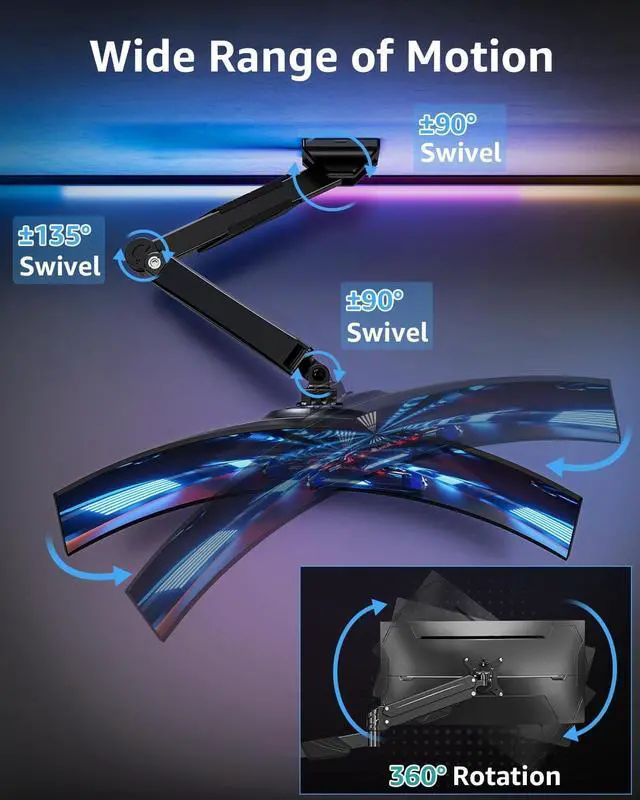 Robust & Stable Construction: Crafted for stability and long-lasting performance, the monitor mount wall uses a premium gas spring mechanism to support even the heaviest ultra-wide displays. A perfect match for curved monitors and small TVs requiring secure wall mounting. ^^