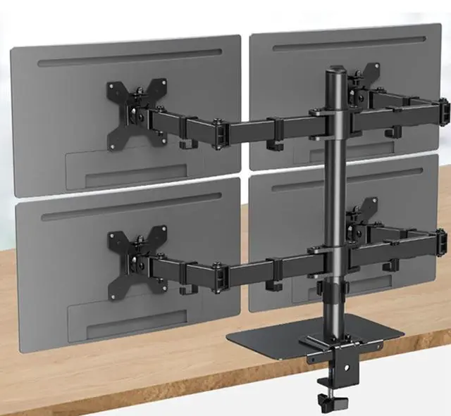 Universal Compatibility: The Quad monitor mount is designed for most computer monitor displays up to 32'' and LCD LED flat or curved screens with VESA pattern of 75x75mm or 100x100mm, each arm supports weight up to 17.6 lbs. Fit most tables with a thickness of 0.39''-3.15'' or a hole diameter of 0.39"-2.36