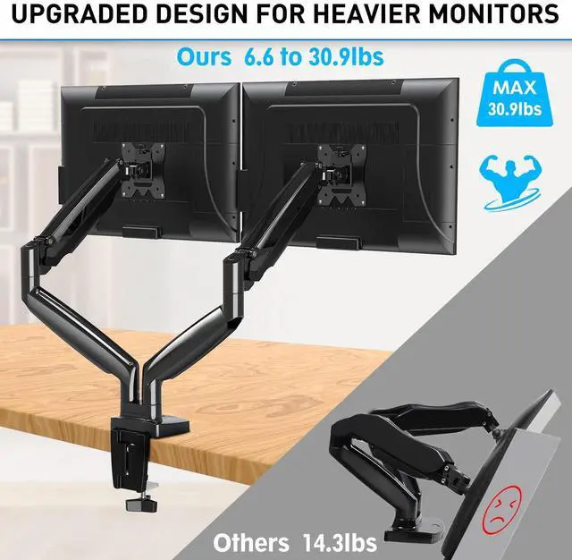 Monitor Stand: Fit for most flat or curved computer screens up to 35", each arm can hold 6.6 - 30.9 lbs display, compatible with VESA pattern 75x75mm and 100x100mm. Compatible with ASUS, Acer, Samsung, LG, HP, AOC, BenQ, MSI, Dell, Lenovo, etc., including but not limited to 35 34 32 30 28 27 25 24 23 22 inch pc monitor. ^^ Full Motion Double