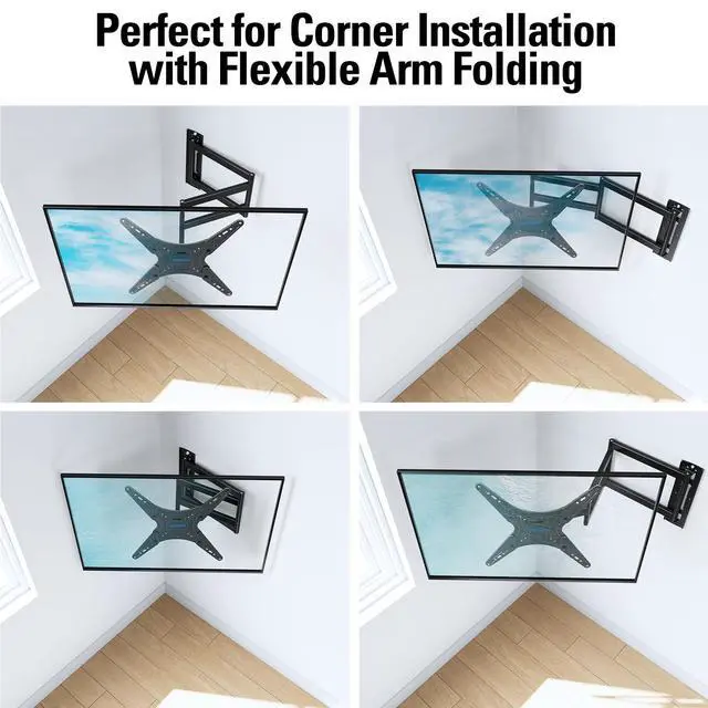 Stability: The 180 Degree Corner TV Wall Mount features heavy-duty cold-formed steel construction and extending arm design. It holds your TV with the arm fully extended and super stable. Each TV mount has been strength tested to ensure security for your TV and your family ^^ Easy to