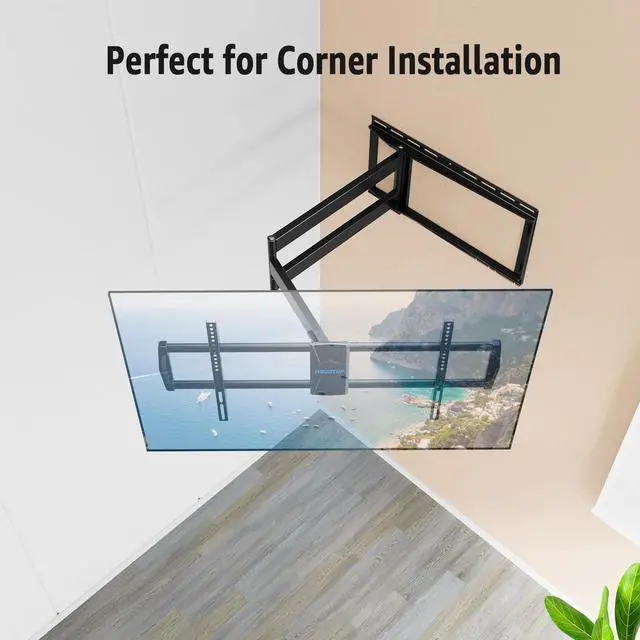 • 40'' Long Arm TV Wall MountThis corner TV wall mount can extend 40'' and retract 3'' to wall to save space. The long arm and the large range of swivels make it a perfect solution for corner installation and you can watch TV from different positions in a room.