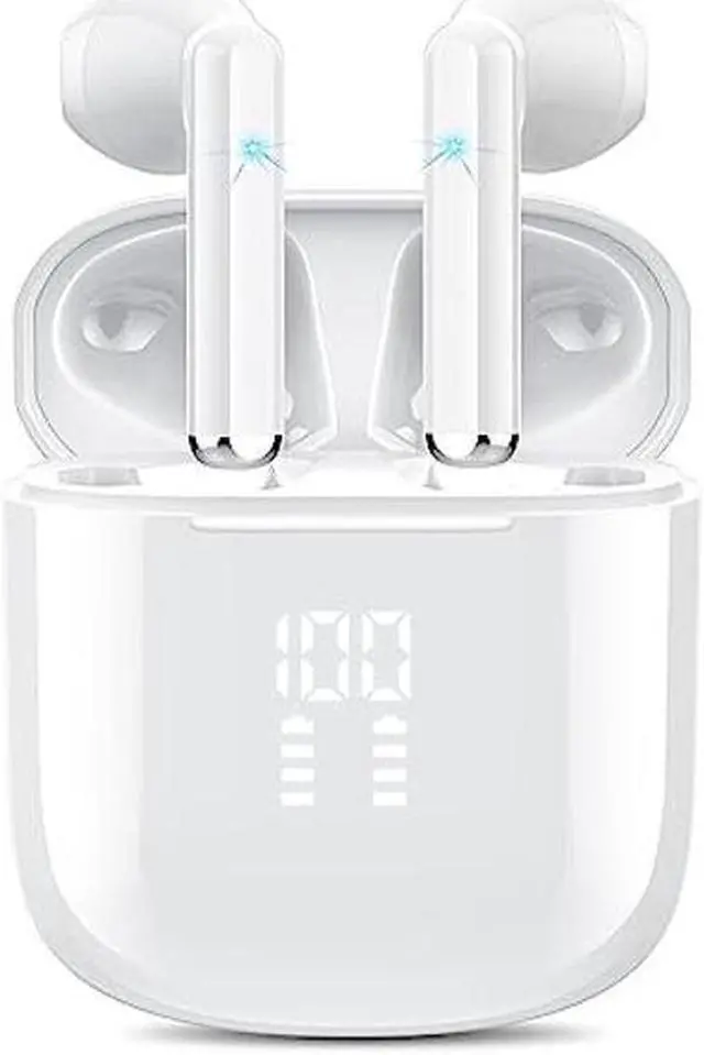 OYIB Wireless Earbuds, Bluetooth 5.3 Headphones with 4-Mics ENC Clear Call, Bluetooth Earbuds Touch Control 25Hour Stereo Sound with LED Power Display, Waterproof Earphones Sprot for Workout White