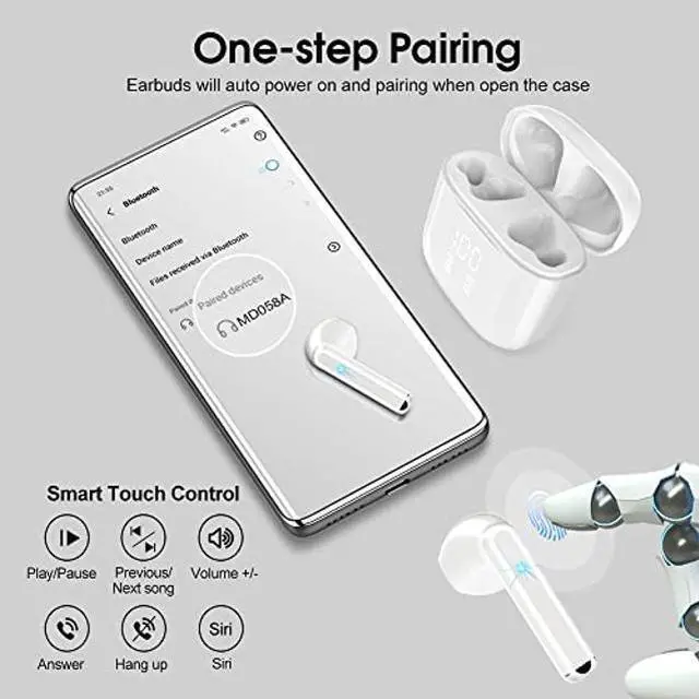 Enjoy Bluetooth 5.3 and Fast Auto Pairing: Latest Bluetooth 5.3 technology achieves lower latency and stronger anti-interference. MD058A true bluetooth headphone offer audio delays much lower than 65ms. Feature reduces the number of disconnections of the ear buds in complex environments(places with many people, such as subways and buses). Adopting hall switch, after the first connection, it will connect with your device as soon as the charging case opens.