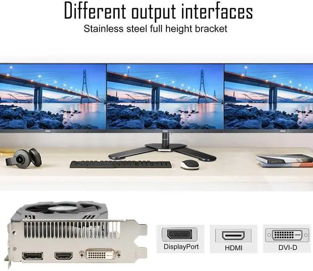 [(Multi-screen Display)] The baffle is equipped with 3 mainstream ports, DP, HDMI and DVI to ensure compatibility with mainstream monitors. It can support up to 3 displays at the same time. Good for 3D CAD, CAM work, video or images editing.